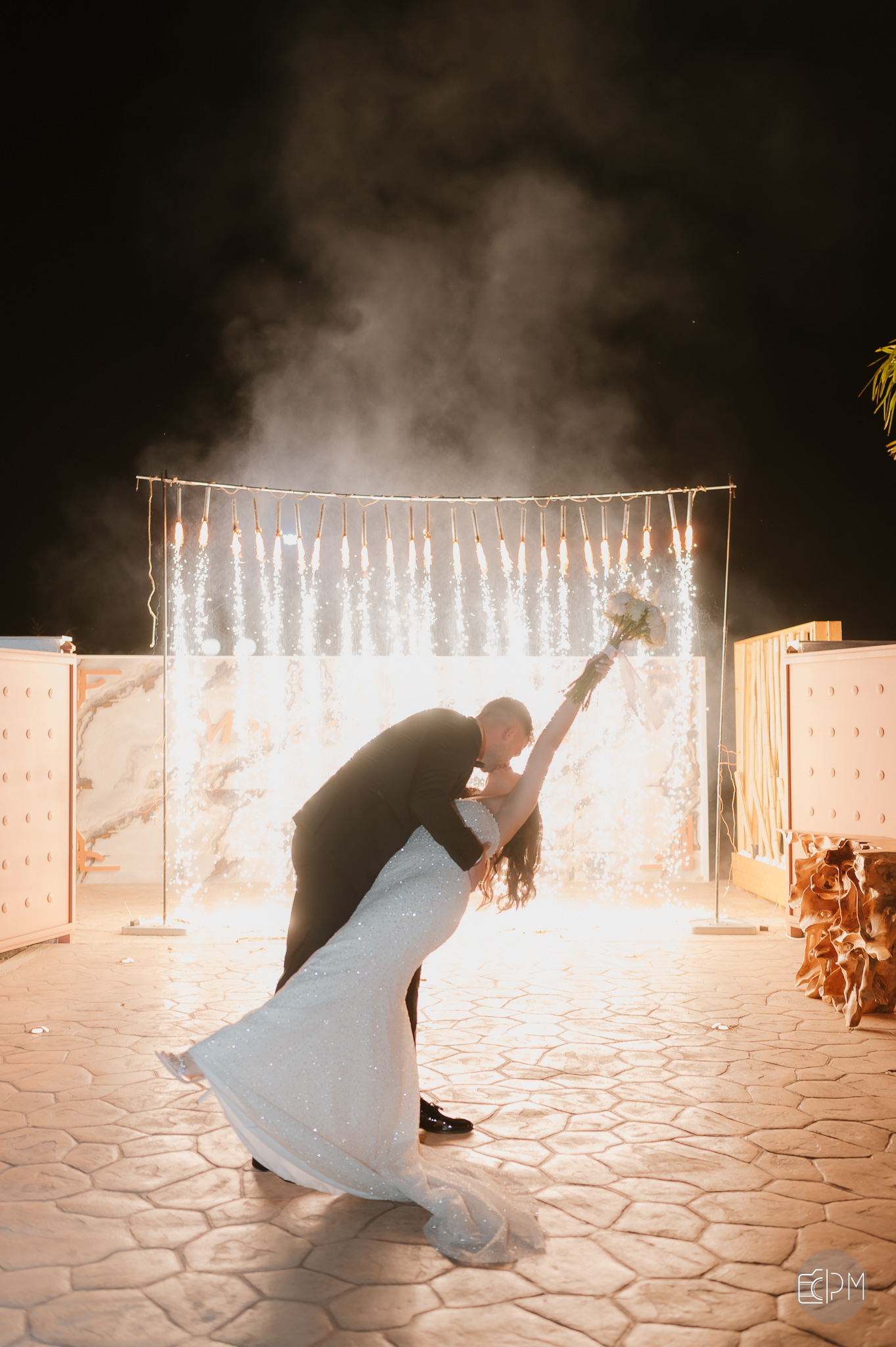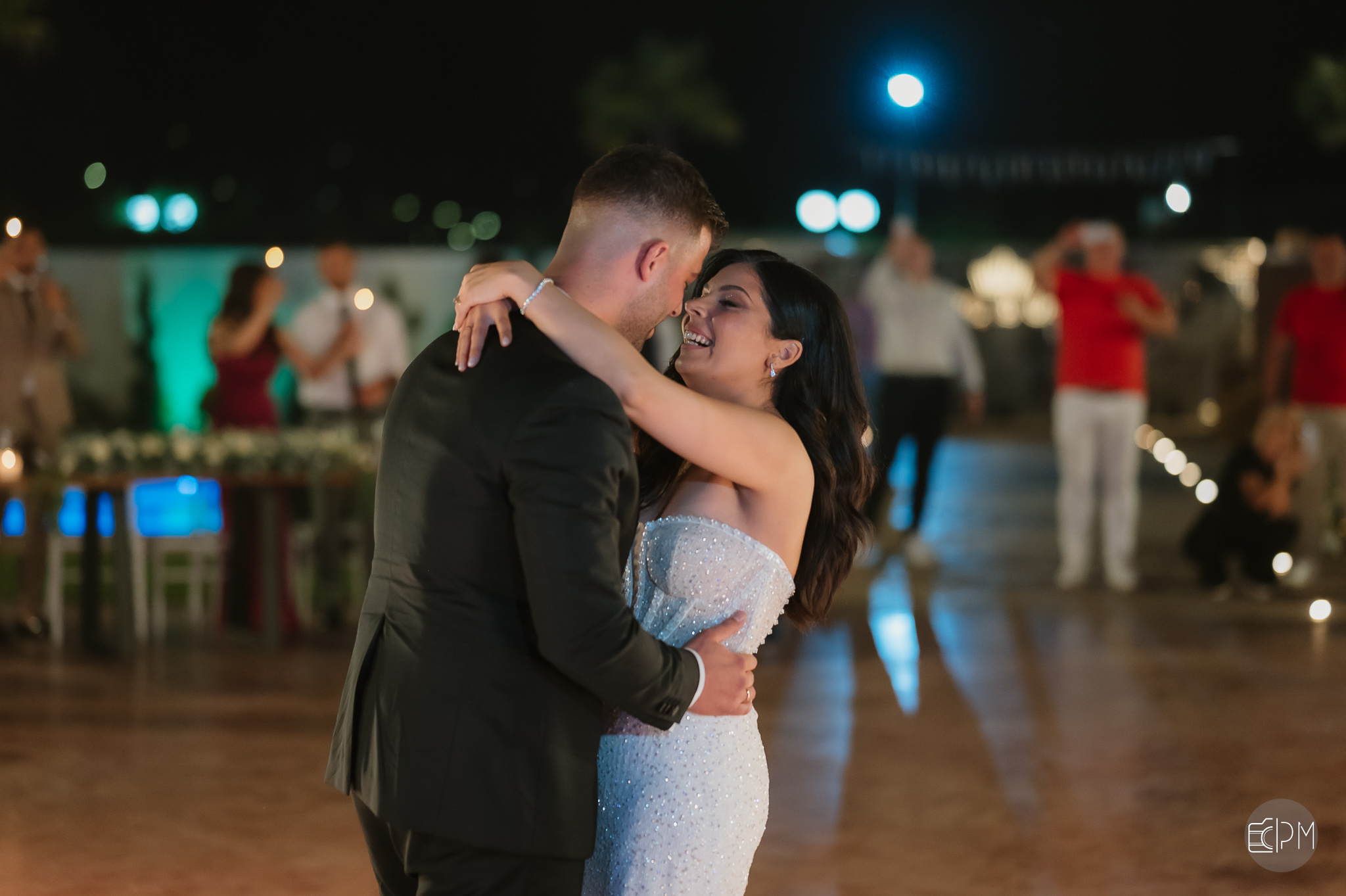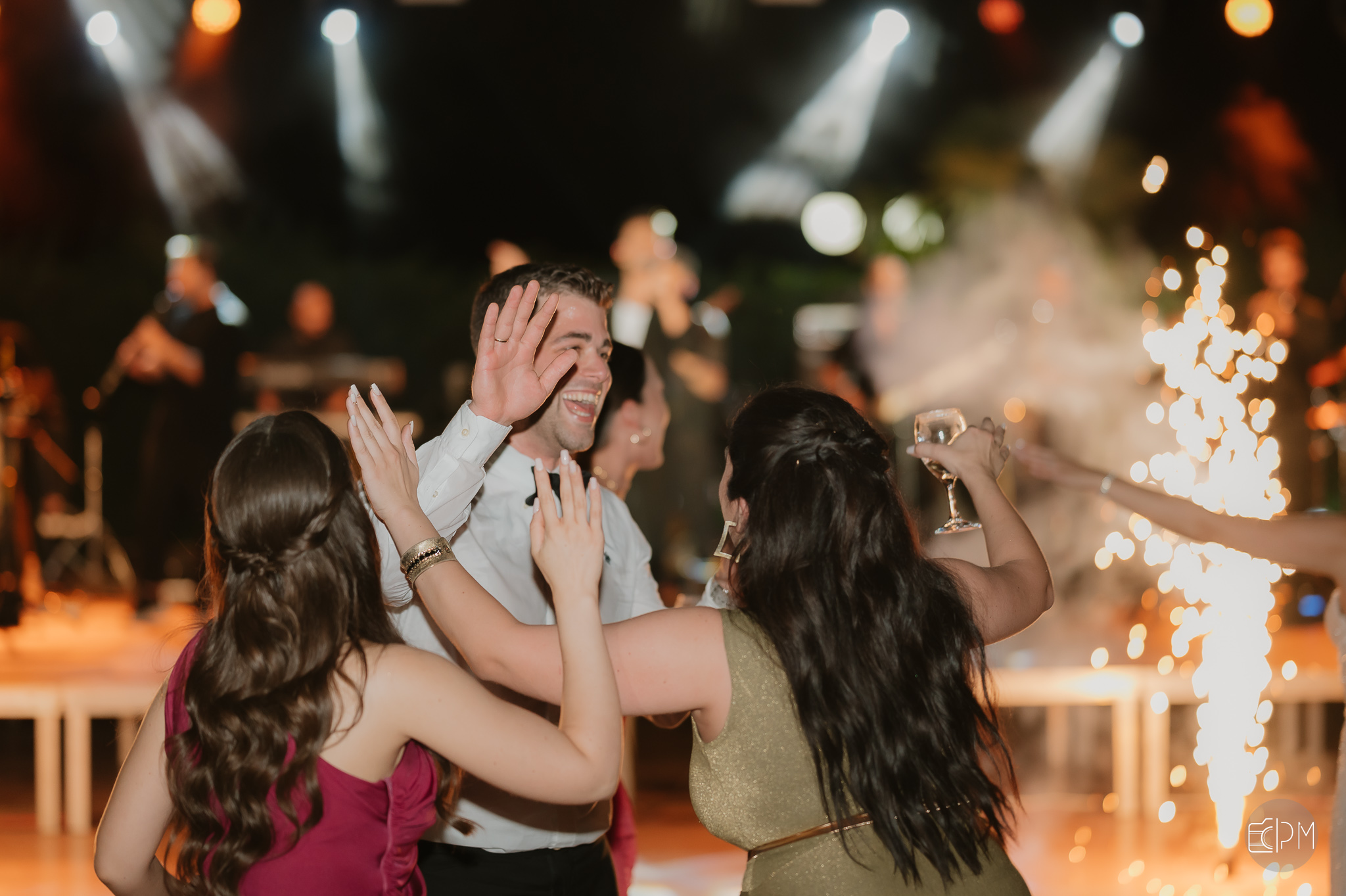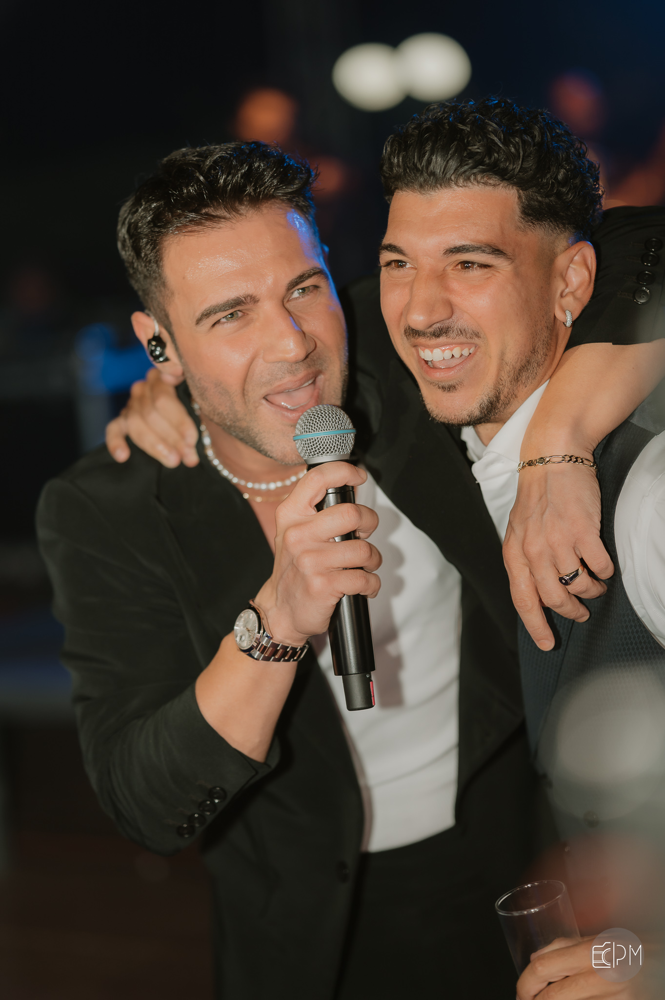 Οι φωτογραφίες από το γλέντι που ακολούθησε στο “Μέγαρο” αποτυπώνουν με τον πιο χαρακτηριστικό τρόπο την ευτυχία του ζευγαριού αλλά και των καλεσμένων που διασκέδασαν με την ψυχή τους, στους ρυθμούς του Πέτρου Ιακωβίδη και της ορχήστρας του.