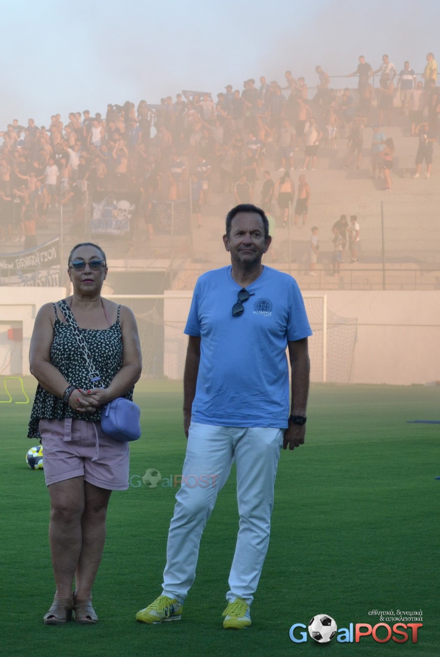 Παρά την αφόρητη ζέστη οι φίλοι της βολιώτικης ομάδας έπιασαν από νωρίς θέση στην ιστορική έδρα τους και δεν σταμάτησαν λεπτό να τραγουδούν για την αγαπημένη τους ομάδα.