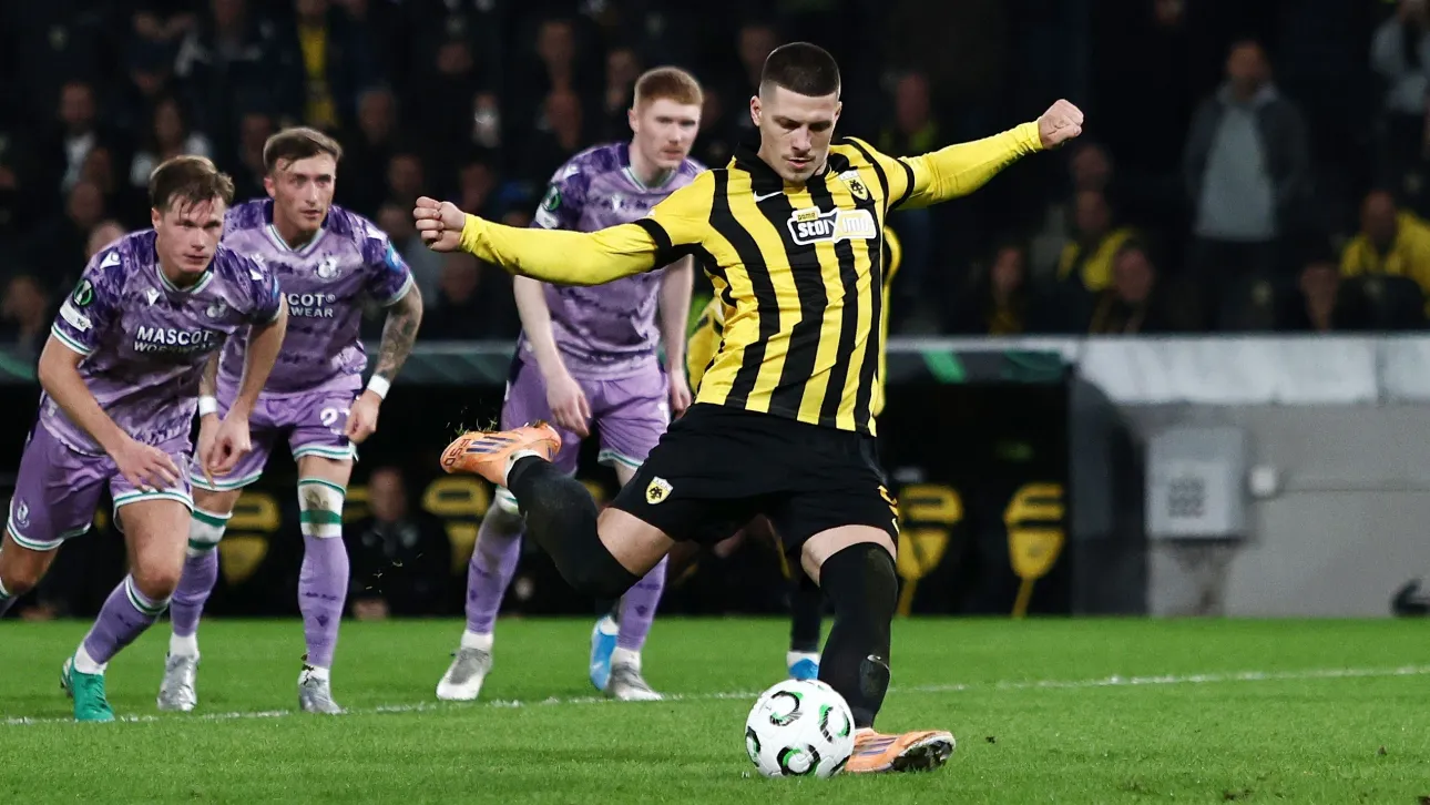 Αν και η ΑΕΚ ήταν το φαβορί στην αναμέτρηση με την Σάμροκ Ρόβερς, δεν κατάφερε να πάρει τη νίκη μένοντας στην ισοπαλία με 1-1. Το σκορ άνοιξε ο Μπούρκ από τα 11 μέτρα στο 21′, ενώ ο Γιόβιτς στο 90′ διαμόρφωσε το τελικό σκορ.