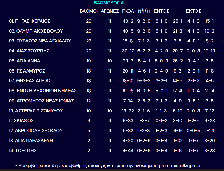 Η βαθμολογία της Α’ ΕΠΣΘ