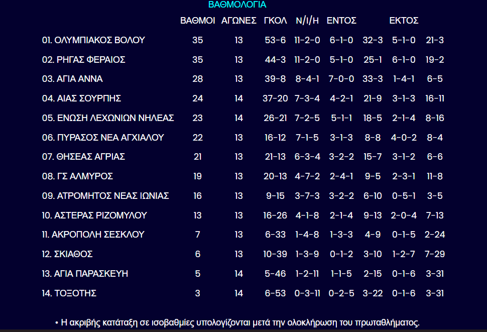 Α’ ΕΠΣΘ 14η αγωνιστική