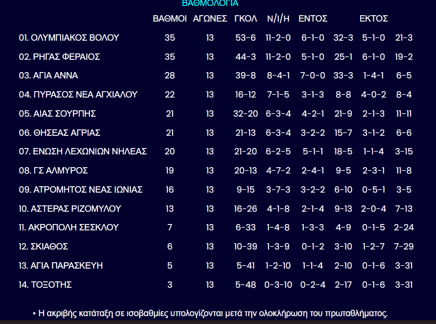 Α’ ΕΠΣΘ – 14η αγωνιστική