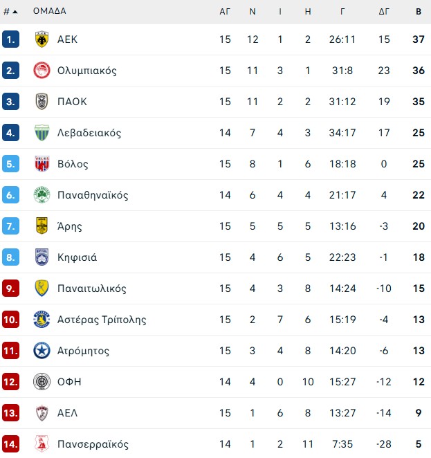 Παράλληλα, μετά τη μεγάλη νίκη στο ντέρμπι με τον Παναθηναϊκό, ο ΠΑΟΚ ανέβηκε στους 35 βαθμούς, με τρεις ομάδες να βρίσκονται σε απόσταση δύο βαθμών στη μάχη του τίτλου!