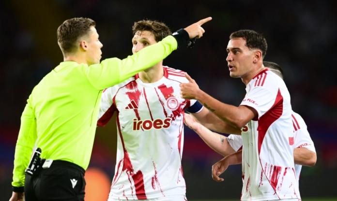 Κάπου εκεί ωστόσο, τα πράγματα χάλασαν. Μία αδιανόητη απόφαση του Σνάιντερ έφερε κόκκινη κάρτα από το πουθενά στον Έσε, με τους Πειραιώτες να μένουν με παίκτη λιγότερο και στο 66’ να βλέπουν τον Ελβετό να δίνει τραβηγμένο πέναλτι για φάση με πρωταγωνιστές τους Τζολάκη και Ράσφορντ κατόπιν on field review.