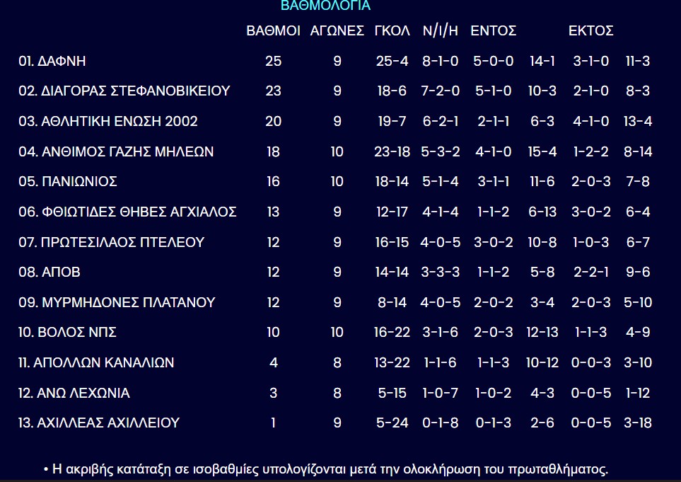 Η βαθμολογία της Β’ ΕΠΣΘ