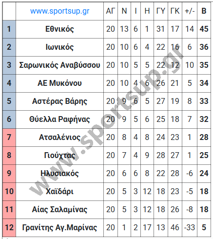 Βαθμολογία: Ο Εθνικός είναι πρώτος με 45 βαθμούς και ακολουθεί ο Ιωνικός με 36.
