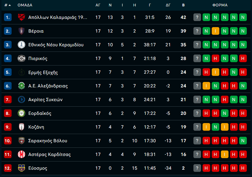 15:00 | Απόλλων Καλαμαριάς – Ευόσμου ΑΕ