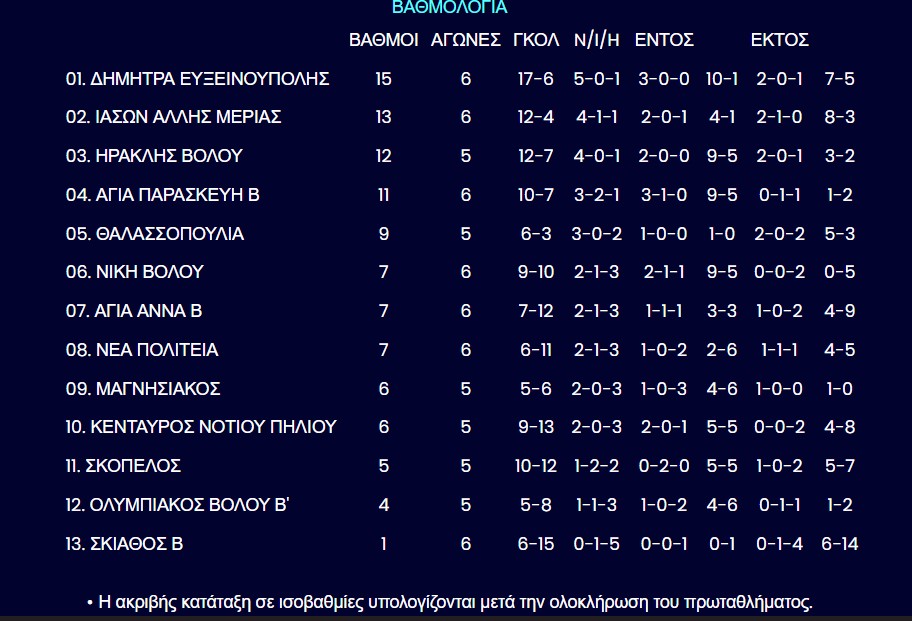 Η βαθμολογία της Γ’ ΕΠΣΘ