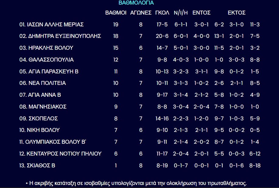Η βαθμολογία της Γ’ ΕΠΣΘ