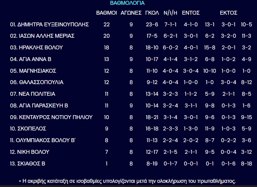 Η βαθμολογία της Γ’ ΕΠΣΘ