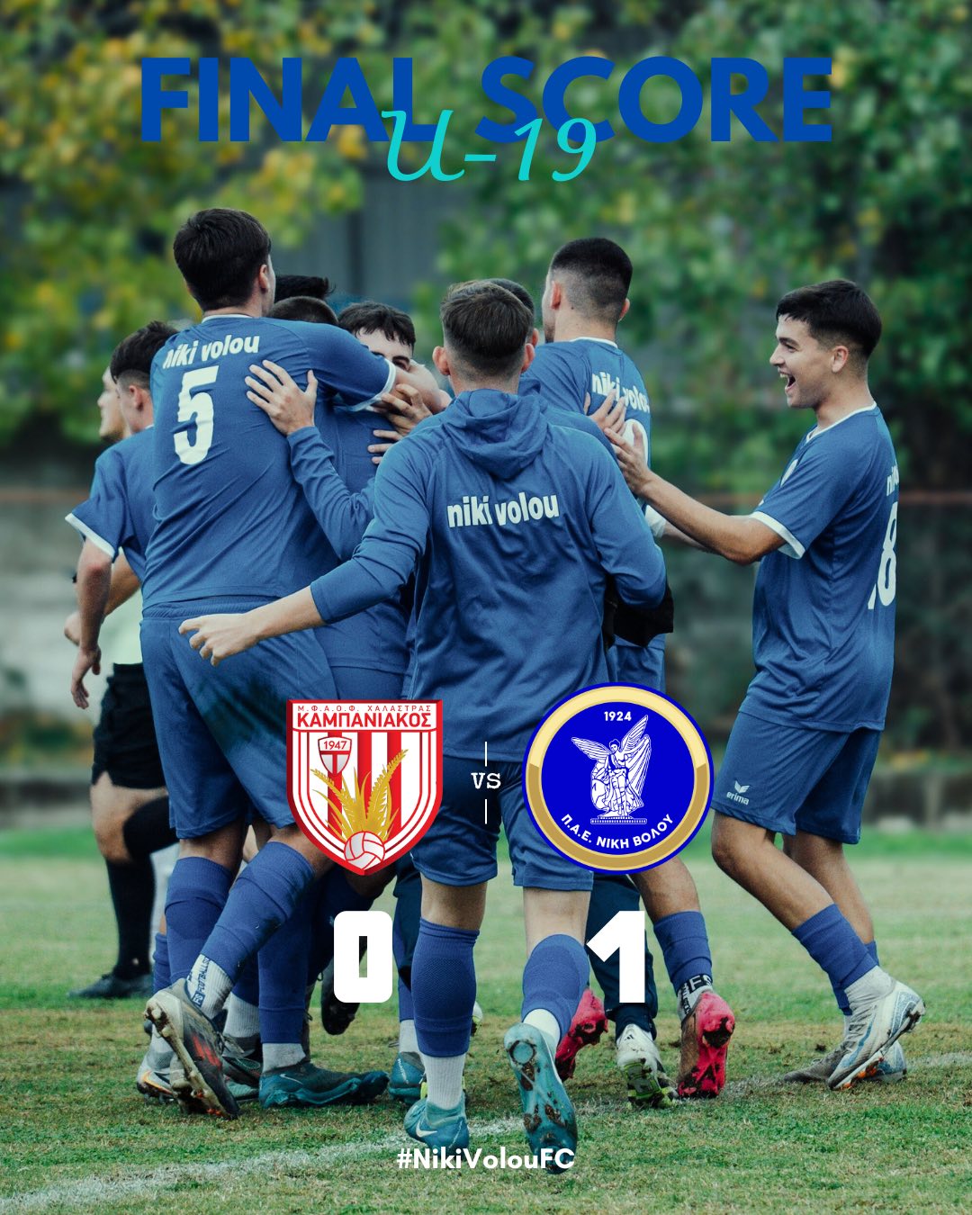 Νίκη Βόλου Κ19 (Θεοδώρου): Τάγκας, Πλιακοστάθης, Κολέτσος (65’ Τασιός), Κουρέντης, Πασιάς, Δενελάβας (80’ Μητρόπουλος), Καραγκούνης, Παππάς, Ζαχαριουδάκης, Παντελής (35’ λ.τρ. Νασιούλας), Καραπετσάκος