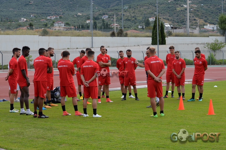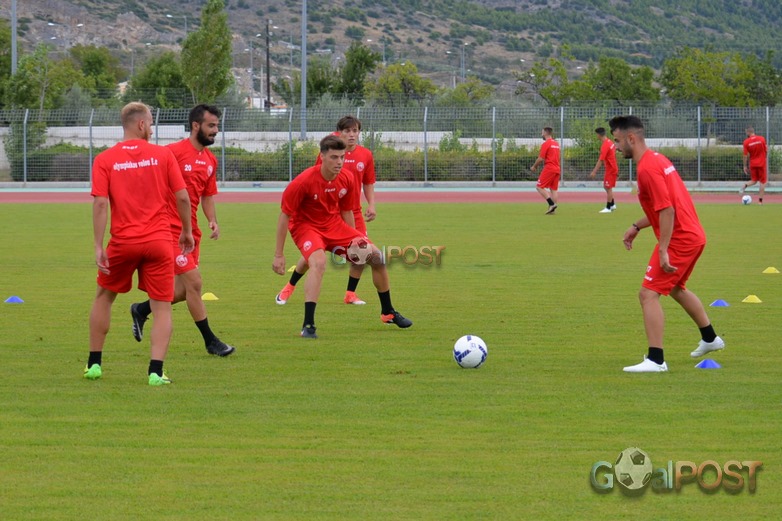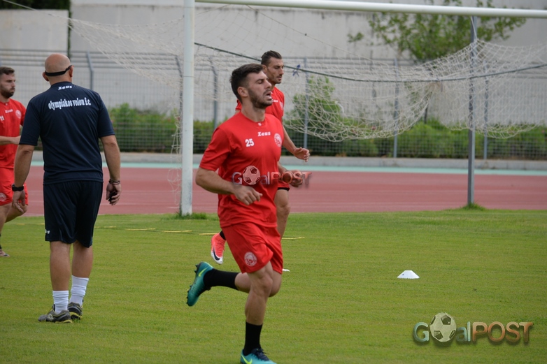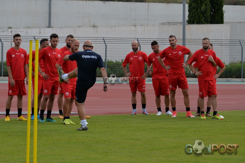 Πριν η ομάδα βγει στο βοηθητικό του Πανθεσσαλικού για την προπόνηση, ο προπονητής του Ολυμπιακού, Περικλής Αμανατίδης, μίλησε στους ποδοσφαιριστές στα αποδυτήρια, τους ευχήθηκε καλή ποδοσφαιρική χρονιά, με υγεία και ζήτησε μεγάλη προσπάθεια απ’ όλους, προκειμένου να επιτευχθεί ο στόχος της ανόδου και η επιστροφή της ομάδας στις επαγγελματικές κατηγορίες.