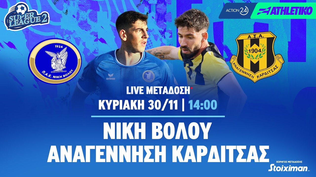 Παρακολουθήστε σε ζωντανή, διαδικτυακή μετάδοση τον αγώνα Νίκη Βόλου – Αναγέννηση Καρδίτσας, στο πλαίσιο της 12ης αγωνιστικής της Super League 2.