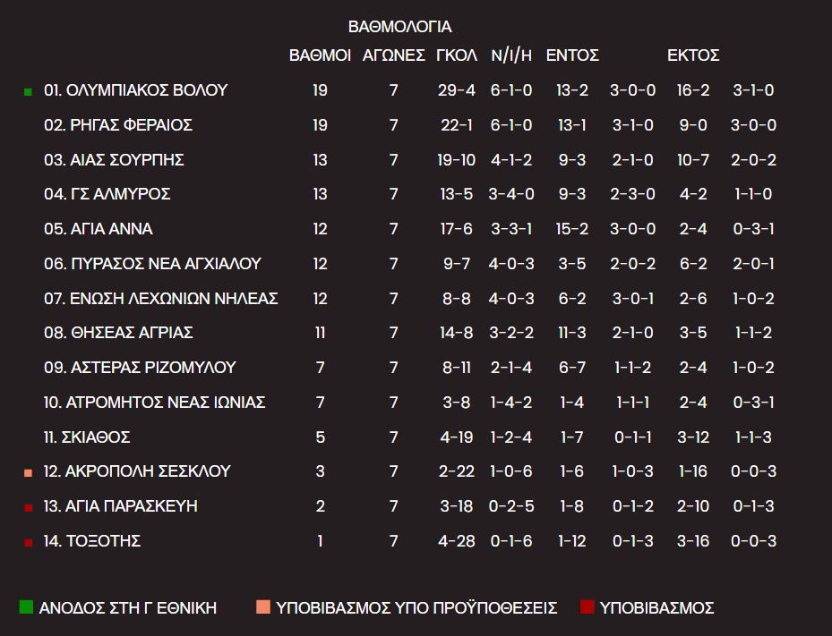 Η βαθμολογία της Α’ ΕΠΣΘ