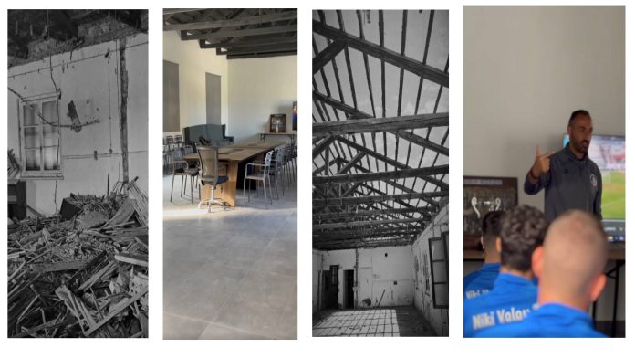 “Η ΠΑΕ Νίκη Βόλου, με μία σημαντική επένδυση και με συνεχείς εργασίες από το καλοκαίρι, κατάφερε να μετατρέψει ένα εγκαταλελειμμένο για δεκαετίες κτίσμα, στο παλιό αμαξοστάσιο του ΟΣΕ, δίπλα στο γήπεδο «Παντελής Μαγουλάς», σε ένα απόλυτα λειτουργικό χώρο εργασίας και αναψυχής για την πρώτη ομάδα!
