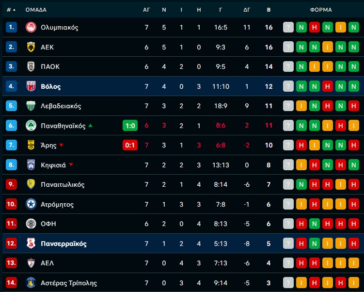 Στην τέταρτη θέση του βαθμολογικού πίνακα στρογγυλοκάθησε ο Βόλος πετυχαίνοντας την τέταρτη νίκη στα τελευταία πέντε παιχνίδια.