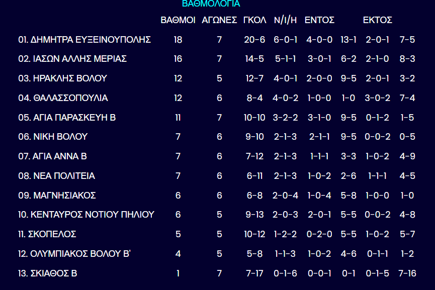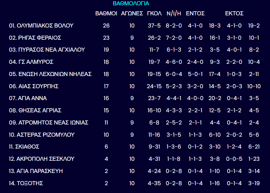 *Ρεπό έκαναν οι: Κένταυρος Ν.Π., Μαγνησιακός, Ολυμπιακός Βόλου Β’, Ηρακλής, Θαλασσοπούλια, Σκόπελος.
