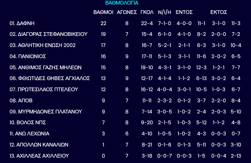 *Ρεπό έκαναν οι: Άνω Λεχώνια, Διαγόρας, Απόλλων Καν., Πρωτεσίλαος, Μυρμηδόνες, Α.Ε. 2002, Αχιλλέας, ΑΠΟΒ.