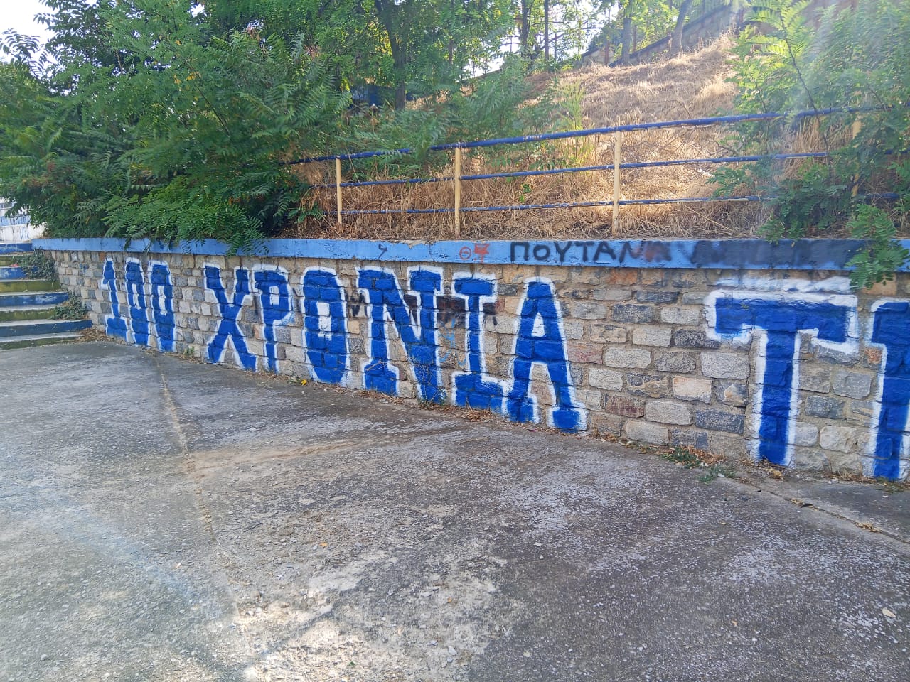 Αγανακτισμένος ο πρώην πρόεδρος του Ρήγα Φεραίου, Κώστας Γιάτσιος, κατήγγειλε την βεβήλωση με μπογιά των τοίχων σκαλιστής πέτρας στο Δημοτικό Στάδιο Βελεστίνου.