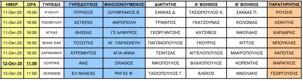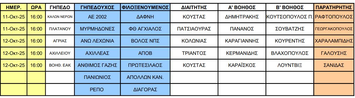 Τους διαιτητές των αγώνων του σαββατοκύριακου 11-12 Οκτωβρίου στα πρωταθλήματα της Α’ και Β’ ΕΠΣΘ, ανακοίνωσε η Τοπική Επιτροπή Διαιτησίας. Αναλυτικά: