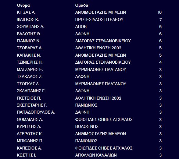 Οι πρώτοι σκόρερ των πρωταθλημάτων της Α’, Β’ και Γ’ τοπικής κατηγορίας.