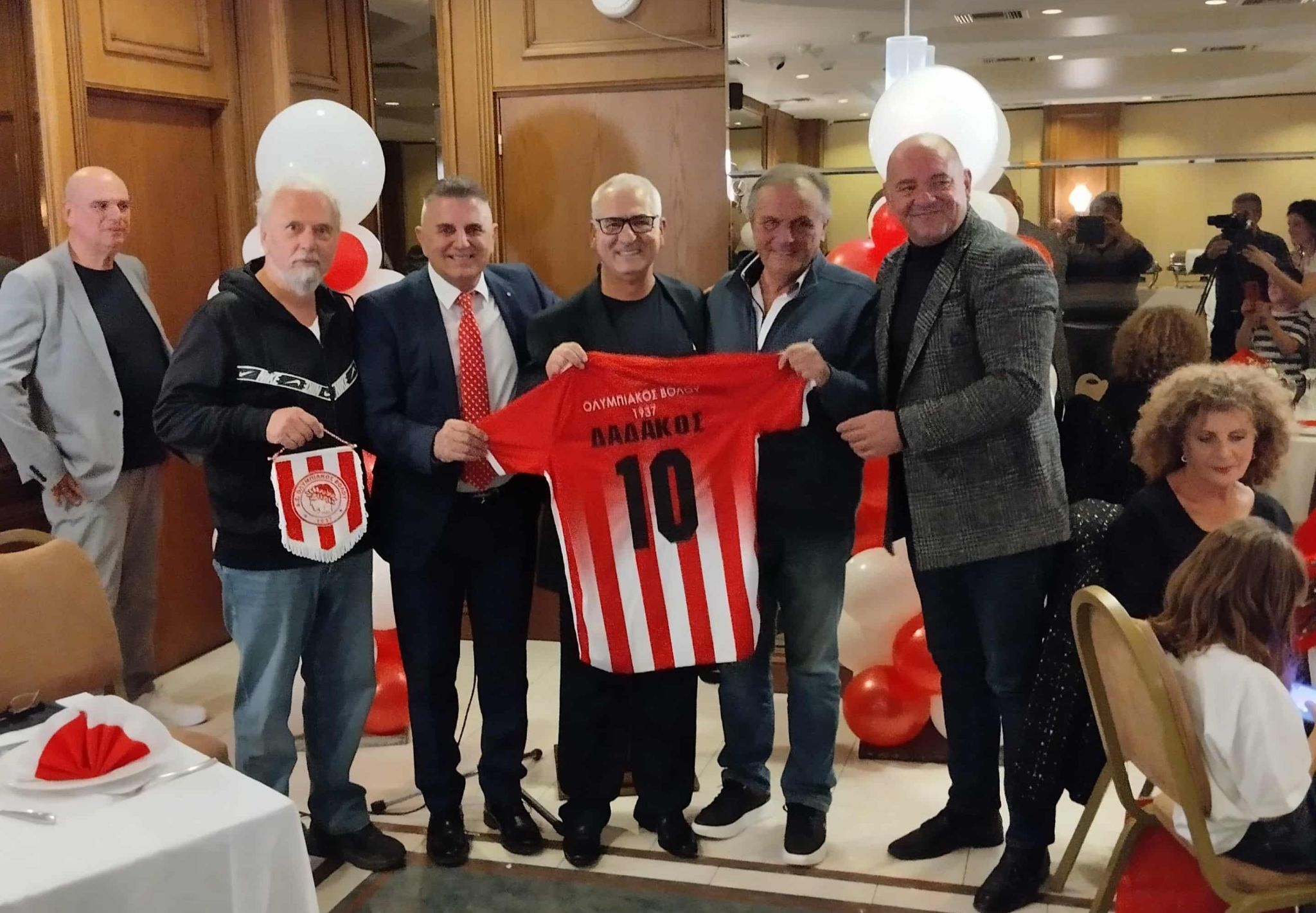 Σε μια βραδιά γεμάτη συναίσθημα και αναμνήσεις, ο Ολυμπιακός Βόλου τίμησε σήμερα Τρίτη (18/11) τον παλαίμαχο ποδοσφαιριστή Βασίλη Δαδάκο, σε ειδική εκδήλωση που πραγματοποιήθηκε στο ξενοδοχείο «Παρκ». Το «παρών» έδωσαν το σύνολο του ποδοσφαιρικού τμήματος με επικεφαλής τον πρόεδρο Σάκη Τζήμα, πολλοί παλαίμαχοι του συλλόγου, η διοίκηση του Ερασιτέχνη, καθώς και ιστορικοί παράγοντες όπως ο Θανάσης Παπαγιάννης, δημιουργώντας μια ατμόσφαιρα με έντονο το αποτύπωμα της ερυθρόλευκης ιστορίας.