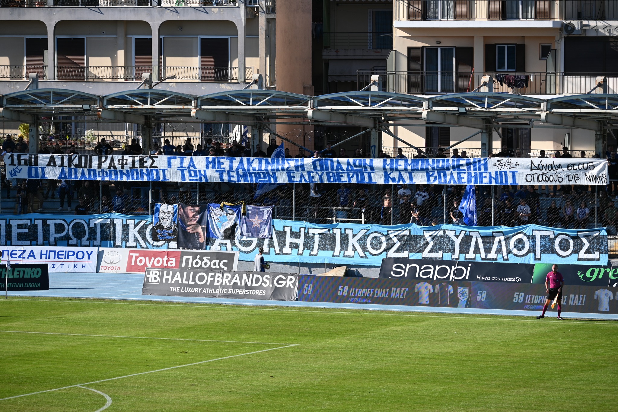 Μ’ ένα μεγάλο πανό που ανήρτησαν στο ματς με την Αναγέννηση Καρδίτσας, οι οπαδοί του ΠΑΣ Γιάννινα καυτηριάζουν την ευαισθησία του κρατικού μηχανισμού για τις μεμονομένες μετακινήσεις οπαδών, σε αντίθεση με το έγκλημα των Τεμπών.