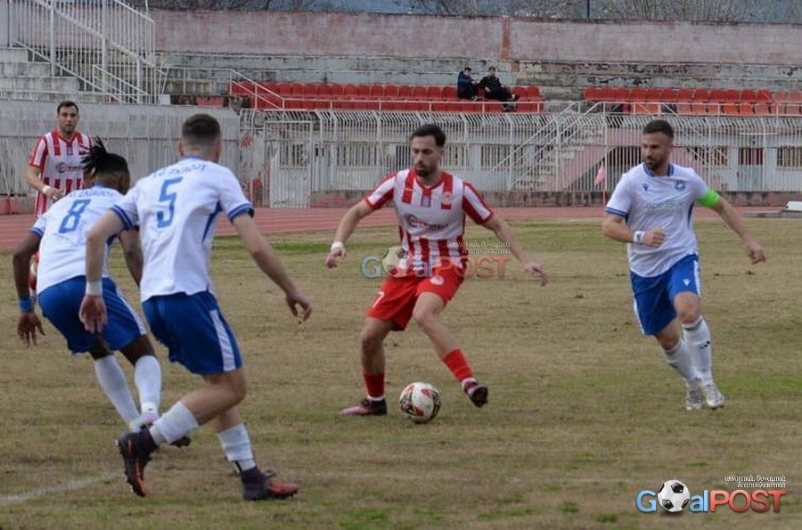 Η ομάδα του Σάκη Θεοδοσιάδη κυριάρχησε απόλυτα, κλείνοντας το πρώτο 45λεπτο με το δείκτη του σκορ στο 5-0. Ο χορός των γκολ ξεκίνησε στο 9’ με τον Λαγό, ενώ ο Γιαννιτσάνης διπλασίασε τα τέρματα στο 16’ με κεφαλιά μετά από σέντρα του Κεϊτά. Ένα αυτογκόλ του Σταμέλου στο 21’ ανέβασε τον δείκτη του σκορ στο 3-0, ενώ ο Γιαννιτσάνης χτύπησε ξανά στο 30’ για το 4-0. Το ημίχρονο έκλεισε με την απευθείας εκτέλεση φάουλ του Τζιάνη στο 44’.