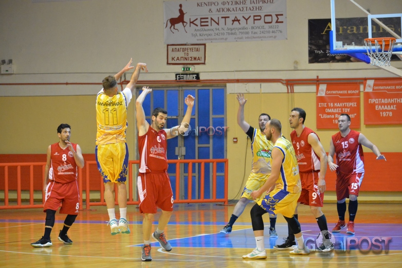 Το πρώτο βήμα για την άνοδο στην Γ’ Εθνική κατηγορία έκανε η ομάδα μπάσκετ του Ολυμπιακού Βόλου, επικρατώντας με 75-53 του ΑΟ Καλαμπάκα για την πρώτη αγωνιστική των πλέι οφ της Α1 ΕΣΚΑΘ. Δείτε μέσα από τον φωτογραφικό φακό του goalpost.gr στιγμιότυπα από την αναμέτρηση των δύο ομάδων που διεξήχθη στο κλειστό του ΕΑΚ Βόλου.