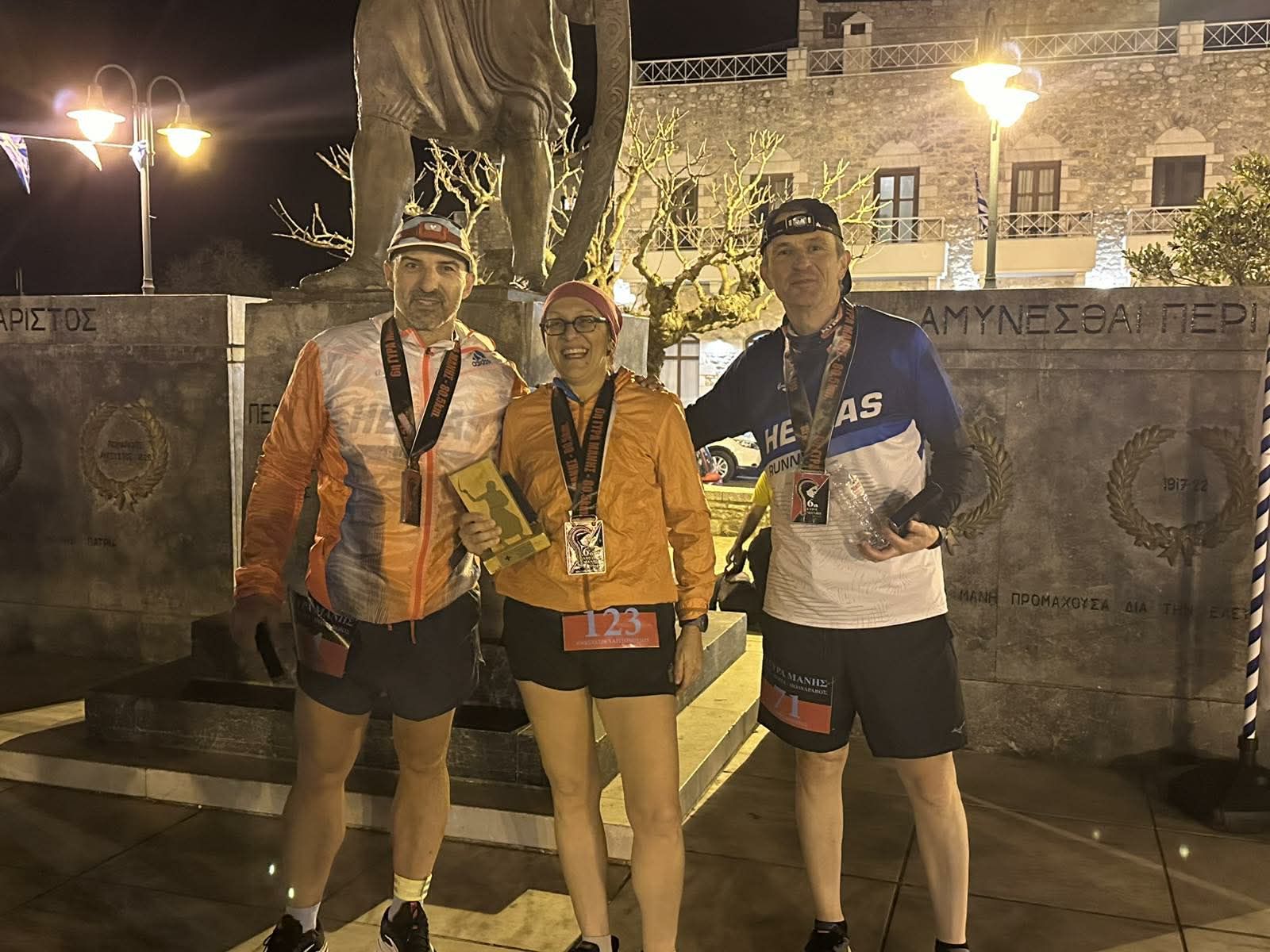 Μία μέρα πριν, το Σάββατο 7 Μαρτίου έγινε ένας ακόμη σπουδαίος αγώνας υπεραπόστασης. Σε 10 ώρες 05:46 έτρεξε ο Κώστας Ξένος την 6η Γύρα Μάνης απόστασης 80 χιλιομέτρων που έγινε με επίκεντρο την Αρεόπολη Λακωνίας. Την 15η θέση στις γυναίκες κατέλαβε η Αναστασία Χαριτοπούλου με 11:27:34. Ο Στέλιος Μπούρας τερμάτισε σε 11:31:00.