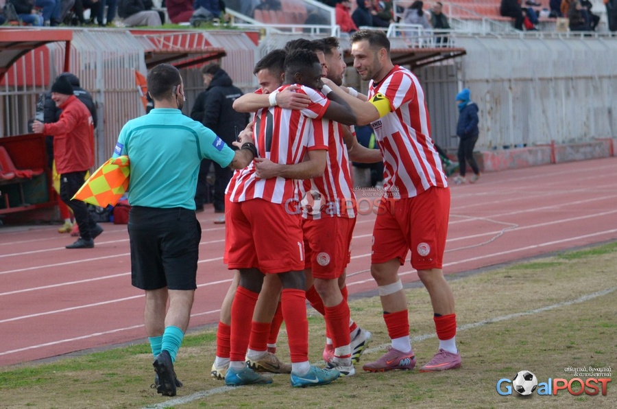 Το 1-0 έκανε ο Κεϊτά ένα λεπτό πριν τη λήξη του πρώτου μέρους με κοντινό πλασέ. Οι ερυθρόλευκοι πέτυχαν και δεύτερο τέρμα πριν το τέλος του ημιχρόνου με σουτ του Γιαννιτσάνη.