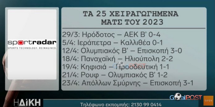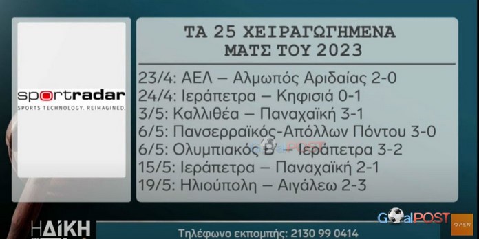 Η “Δίκη” αποκαλύπτει τους αγώνες του 2023 που είναι ύποπτοι για αλλοιώσεις αποτελεσμάτων μέσω στοιχηματικής απάτης: