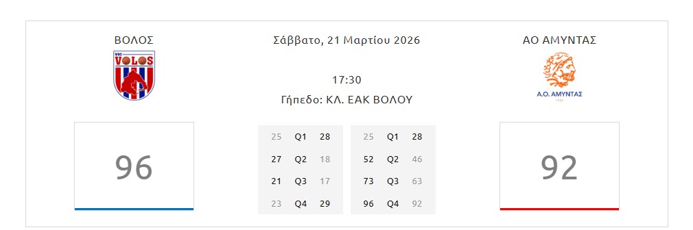 Ανόρθωσις Βόλου-Αμύντας 96-92 (2-2)
