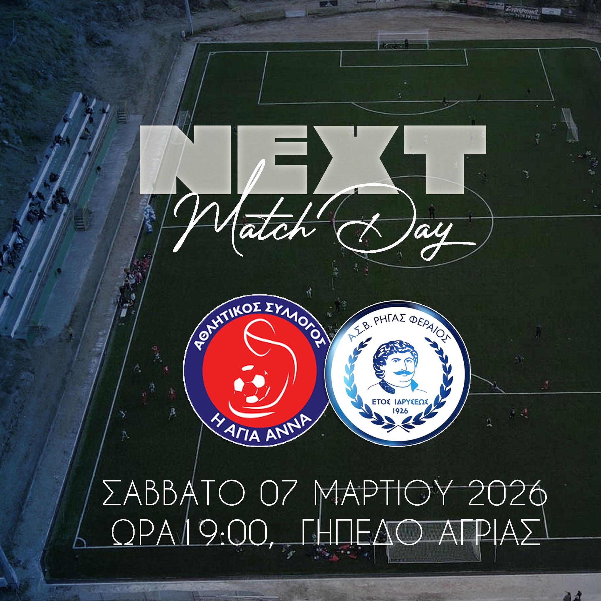 Σάββατο 7 Μαρτίου 2026, γήπεδο Αγριάς στις 7:00 μ.μ.