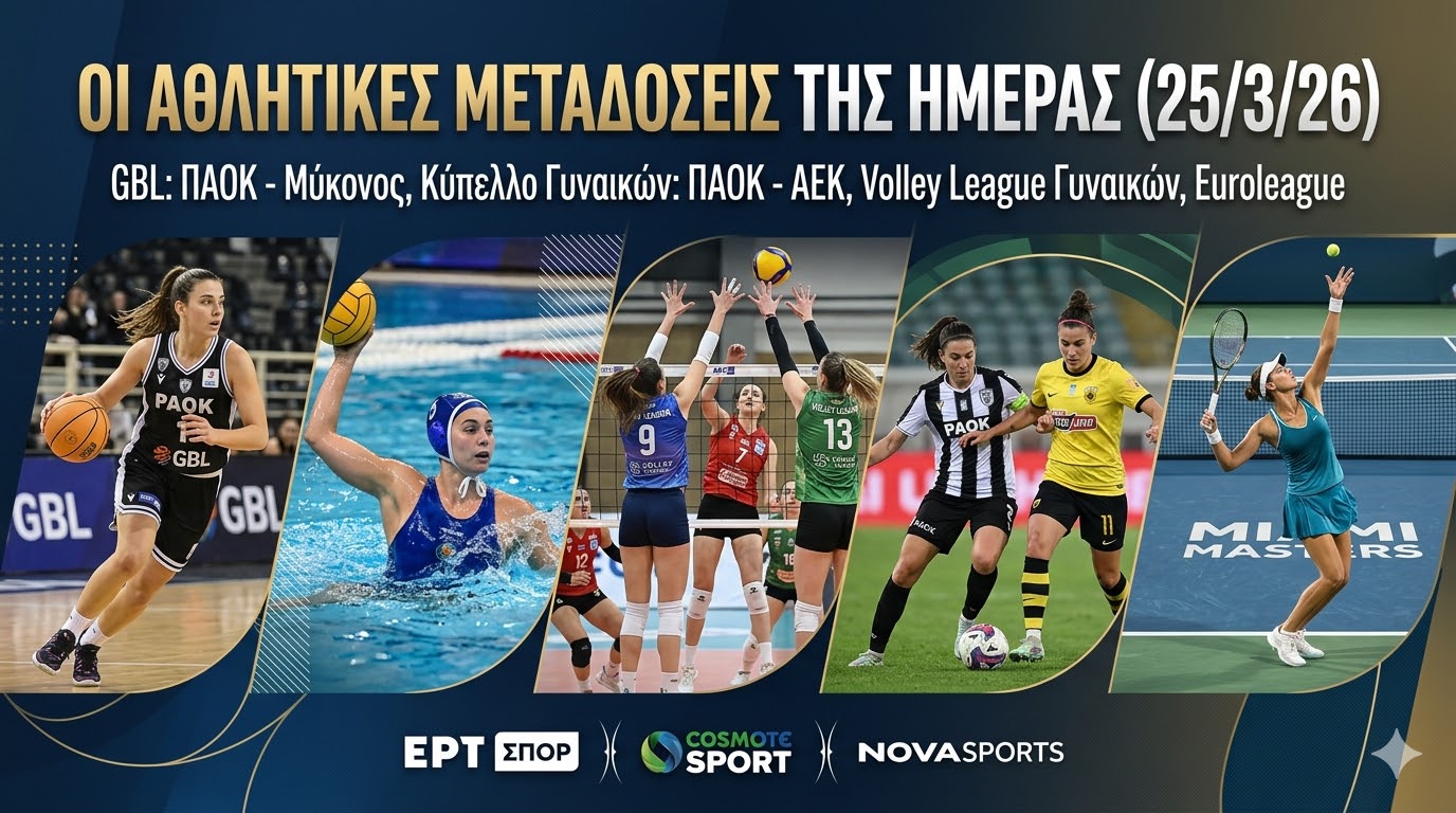 Οι αθλητικές μεταδόσεις της ημέρας (25/3/26)