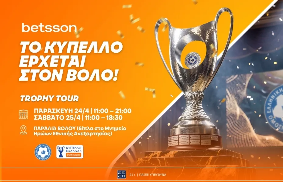 Το Betsson Trophy Tour, σε συνεργασία με την ΕΠΟ, φέρνει για ακόμη μια φορά τον θεσμό στην καρδιά της κοινωνίας, μεταφέροντας τον ενθουσιασμό του τελικού σε κάθε γωνιά του Βόλου.