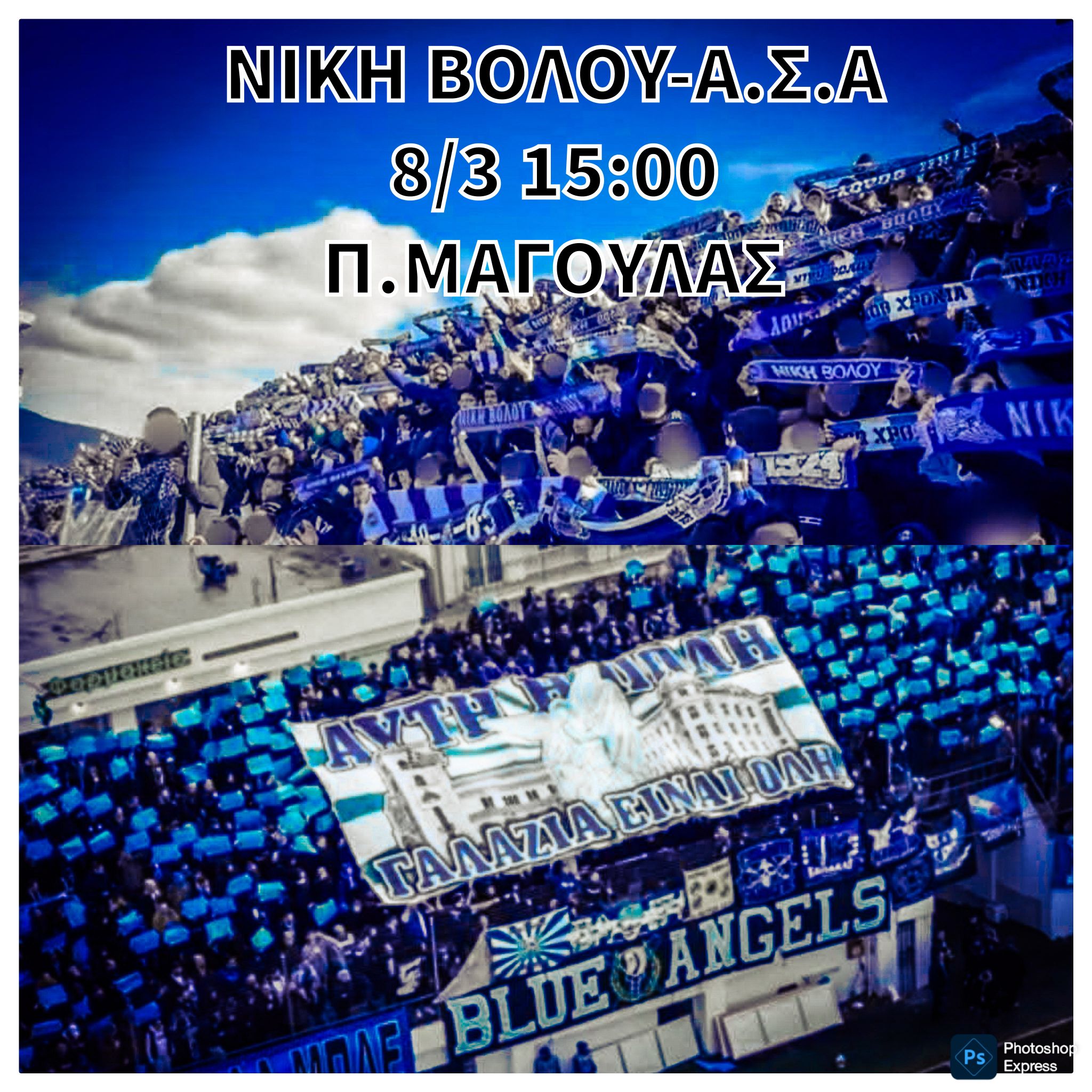 Με ανακοίνωσή τους οι Blue Angels καλούν τον κόσμο να βρεθεί σήμερα στο «Π. Μαγουλάς» και να στηρίξει την ομάδα στο ματς με την Αναγέννηση Καρδίτσας. «Όλοι Κλούβα-Μόνο Νίκη» αναφέρουν χαρακτηριστικά οι οργανωμένοι της Νίκης.