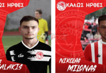 Οι ερυθρόλευκοι απέκτησαν τον 22χρονο τερματοφύλακα Ρωμανό Χαρχαλάκη και τον 20χρονο επιθετικό Νίκο Μυλωνά.