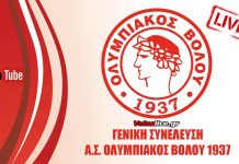 Παρακολουθήστε σε ζωντανή σύνδεση με το αμφιθέατρο του ΤΕΕ Μαγνησίας την ανοιχτή Γενική Συνέλευση του Ολυμπιακού Βόλου: