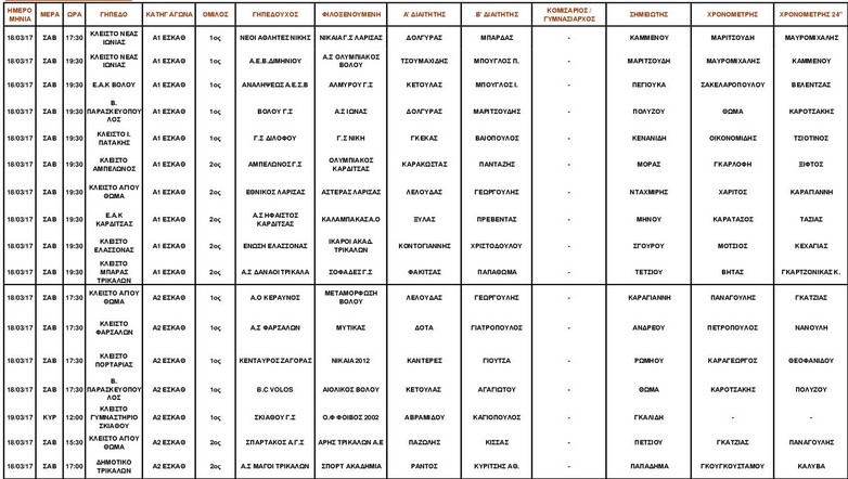 Συνεχίζονται το Σαββατοκύριακο τα πρωταθλήματα μπάσκετ της ΕΣΚΑΘ. Το Σάββατο για την Α1 ΕΣΚΑΘ θα γίνουν οι αγώνες: ΑΕΒΔ-Ολυμπιακός Β., Γ.Σ. Βόλου-Ίωνας, Ανάληψη-Αλμυρός, Δίλοφο-Νίκη και Ν.Α. Νίκης-Νίκαια. Οι διαιτητές και οι γραμματείες των αγώνων έχουν ως εξής…