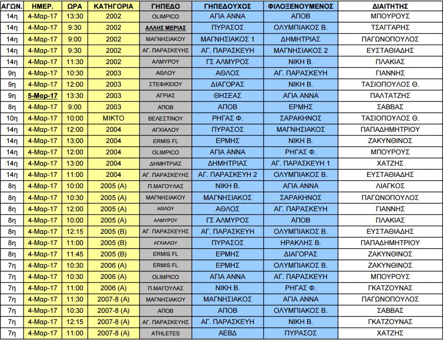 οι ώρες, οι έδρες και οι διαιτητές των αγώνων έχουν ως εξής: