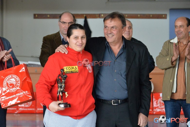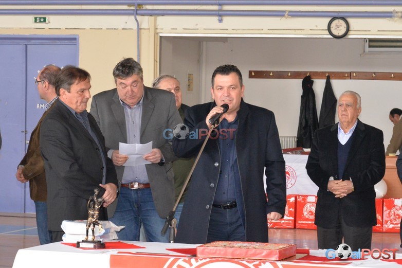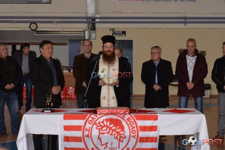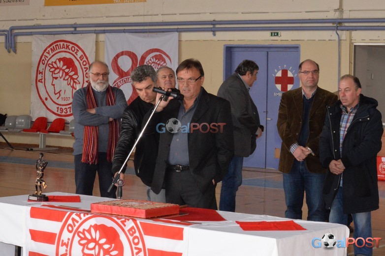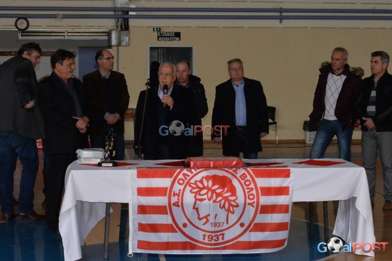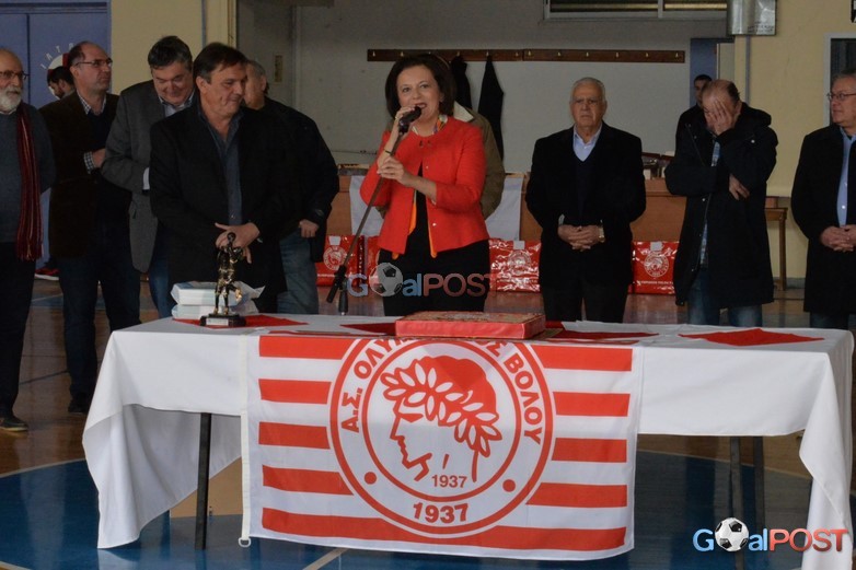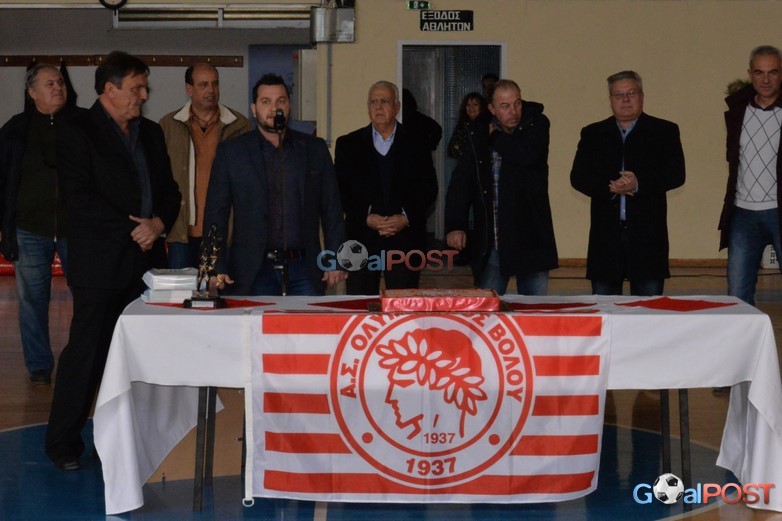 Ο κ. Χατζής απένειμε μία ερυθρόλευκη φανέλα του Ολυμπιακού Βόλου μέσα σε κάδρο στον γιο του, ιδρυτή του συλλόγου και πρώτου προέδρου. Η δεύτερη βράβευση έγινε στην αθλήτρια του τμήματος μπάσκετ Ελένη Ζήτη για την πολυετή προσφορά της στον Ολυμπιακό από τον πρόεδρο κ. Νίκο Τσεκούρα. Της απονεμήθηκε αγαλματίδιο με μπασκετική φιγούρα.