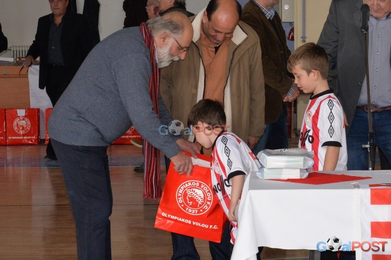 Πριν την κοπή της πίτας από την εκπρόσωπο του Μητροπολίτη Δημητριάδος, ο οποίος ευχήθηκε καλή χρονιά σε όλα τμήματα του συλλόγου και πολλές επιτυχίες, έγινε επίδειξη από νεαρούς ποδοσφαιριστές του Ολυμπιακού, ακολούθησε επίδειξη από το τμήμα μπάσκετ Παίδων Β’, αλλά και από αθλητές του τμήματος τζούντο.