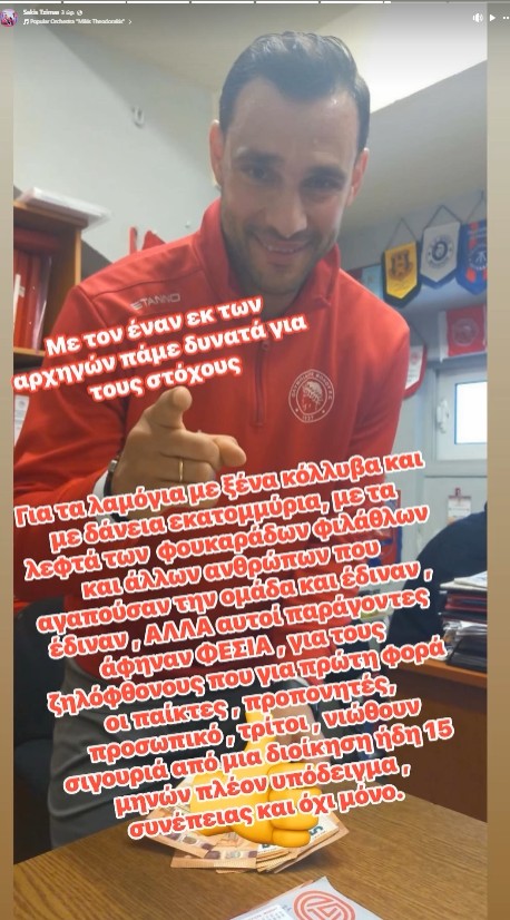 Για τα λαμόγια με ξένα κόλλυβα και με δάνεια εκατομμυρίων, με τα λεφτά των φουκαράδων φιλάθλων και άλλων ανθρώπων που αγαπούσαν την ομάδα και έδιναν, έδιναν, ΑΛΛΑ αυτοί παράγοντες άφηναν ΦΕΣΙΑ, για τους ζηλόφθονους που για πρώτη φορά οι παίκτες, προπονητές, προσωπικό, τρίτοι, νιώθουν σιγουριά από μια διοίκηση ήδη 15 μηνών πλέον υπόδειγμα, συνέπειας και όχι μόνο.»