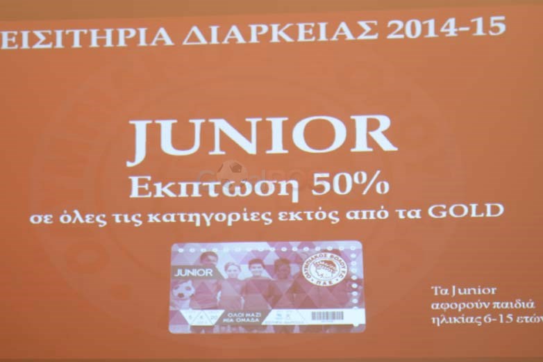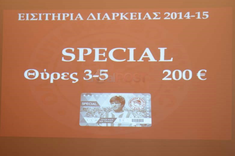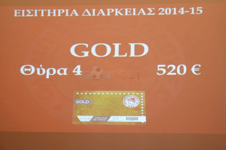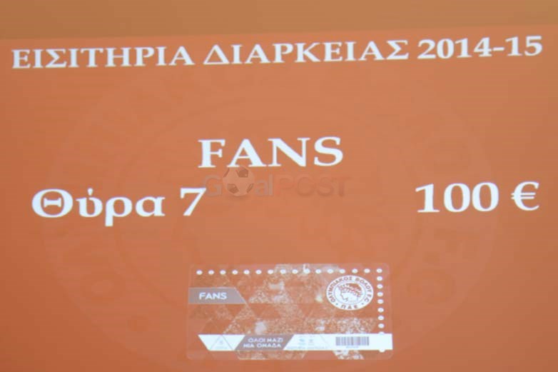 Στη συνέχεια ο διευθυντής της ΠΑΕ Ανδρέας Κικίλιας παρουσίασε τις κατηγορίες των εισιτηρίων διαρκείας της περιόδου 2014-15, όπου θα υπάρχουν τρεις επιπλέον κατηγορίες.
