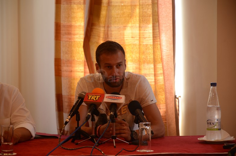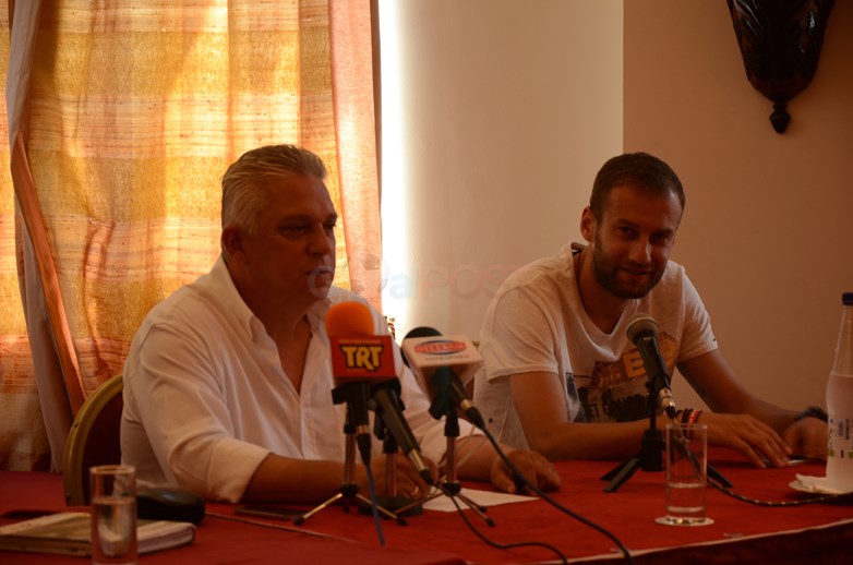 …αντιπρόεδρος της ΠΑΕ, κ. Γιώργος Τόρης και ο Στάθης Ρόκας, εκπρόσωπος των παικτών του Ολυμπιακού Βόλου. Συντονιστής ήταν ο εκπρόσωπος Τύπου της ΠΑΕ κ. Μάνος Παναγιωτόπουλος.