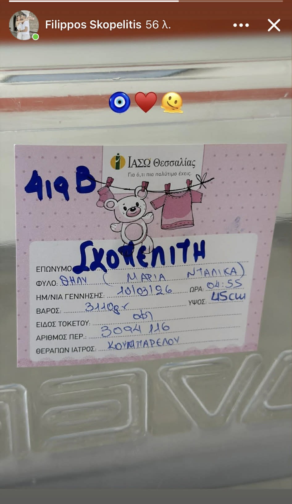 Πατέρας έγινε ο Φίλιππος Σκοπελίτης καθώς η σύζυγός του Μαρία, γέννησε σήμερα το πρωί ένα υγιέστατο κοριτσάκι.