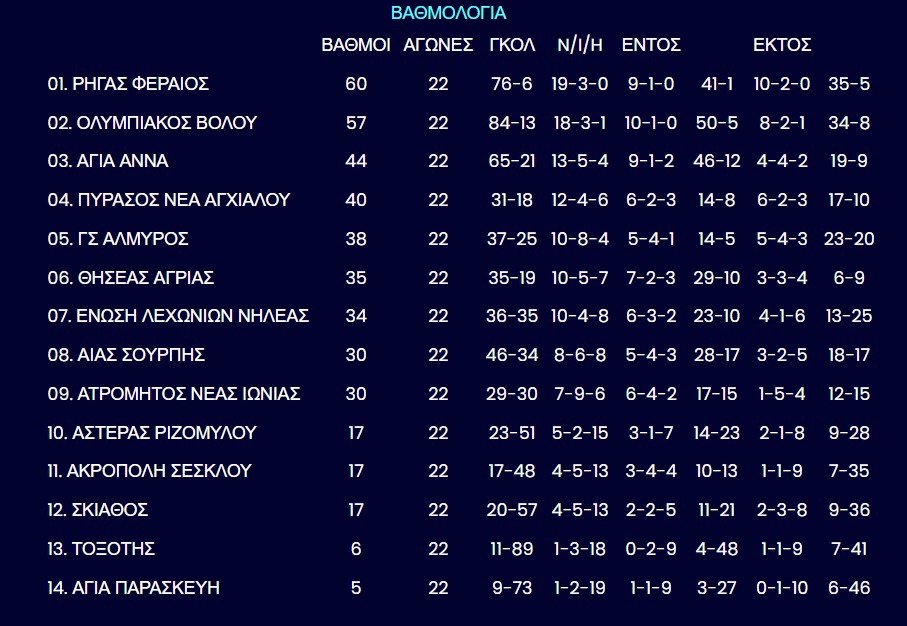 - 16:00 | Γήπ. Βελεστίνου: Ρήγας Φ. – Ατρόμητος