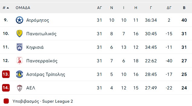 Ο Πανσερραϊκός με το μεγάλο «διπλό» του στη Λάρισα, βγήκε εκτός της ζώνης του υποβιβασμού, ενώ Asteras Aktor και ΑΕΛ Novibet βλέπουν ξανά τον κίνδυνο να πλησιάζει. Αμφότερες οι δύο ομάδες, πέρασαν εντός της ζώνης που οδηγεί στη Super League 2.