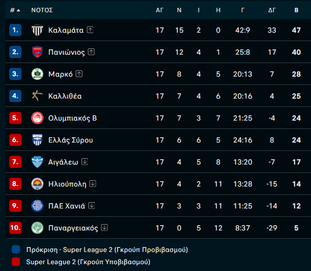 Βαθμολογία Super League 2 – Β’ Όμιλος (24/01/2026)